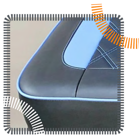 Piping can be added to provide definition to your seats or rock and roll bed. When using a contrasting colour in relation the rest of your seat this will really help pronounce the shape as it runs around the edge of the seat. We can add piping to the seat, arm rests and head rests in a colour of your choice. Our piping is only